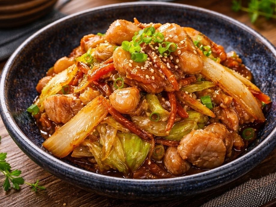 タレの濃厚さが絡み合うこの炒め物。