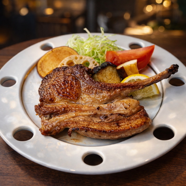 やわらかくジューシーなラム肉を、絶妙な火入れで仕上げた逸品。